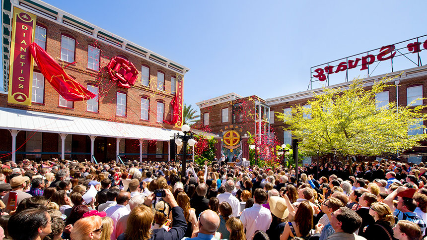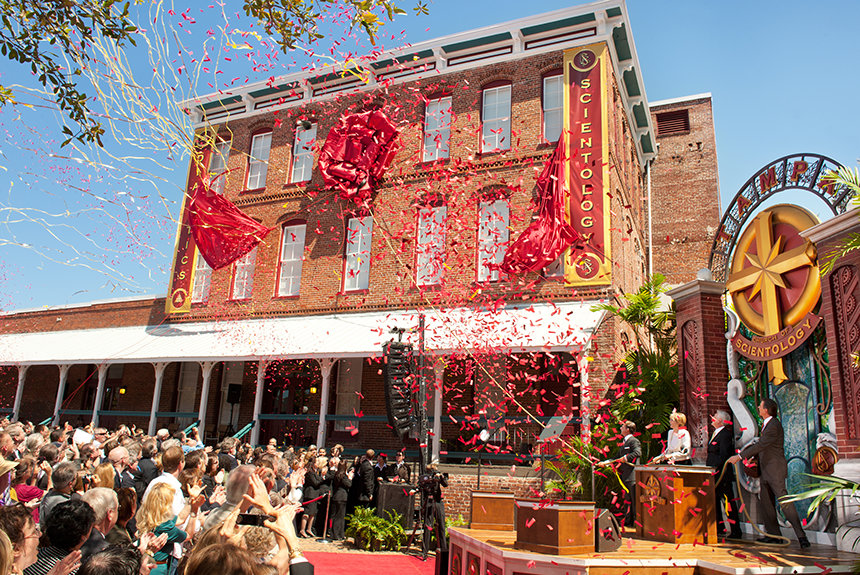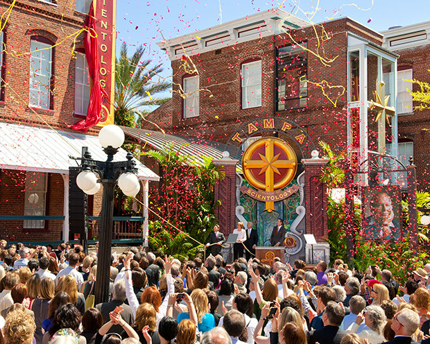 Al día siguiente, domingo 13 de marzo, miles de Scientologists se reunieron a continuación para una ceremonia de la Gran Inauguración para inaugurar la Iglesia de Scientology de Tampa en su nuevo hogar, la histórica Plaza Ybor. La nueva Iglesia de Tampa se hizo necesaria por un crecimiento cuádruple en la congregación de Scientology de Tampa durante la última década.