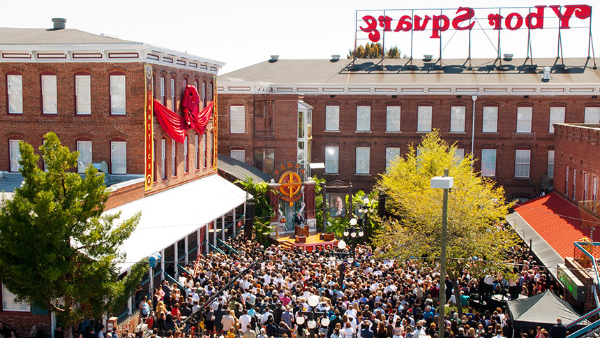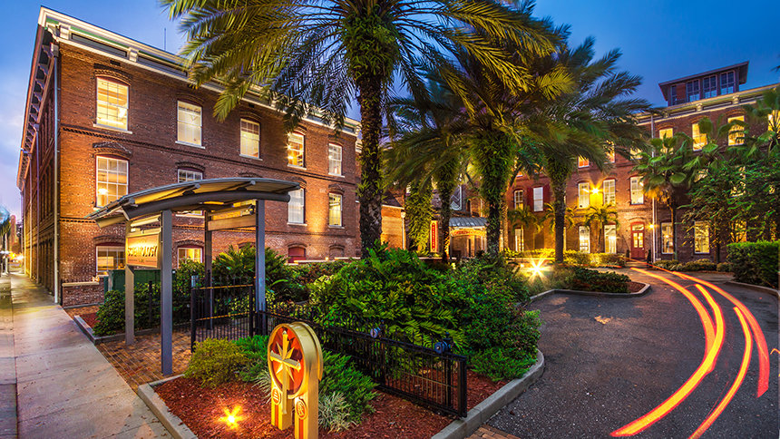 La Plaza Ybor ha sido designada como Monumento Histórico Nacional. Construido originalmente a finales de la década de 1880 por el padre de la ciudad, Vincente Ybor, el complejo de tres edificios sirvió como la “capital del cigarro del mundo” a finales del siglo XIX. Al hacer de la Plaza Ybor su hogar, la Iglesia ha restaurado meticulosamente el sitio histórico. Presenta artefactos de época, incluyendo una prensa de tabaco original, techos de estaño en relieve originales y escalones originales de hierro forjado en la entrada. También conservado está el “atril” del edificio, la plataforma de madera desde la que los “lectores” les leyeron a los trabajadores para entretener y educar.