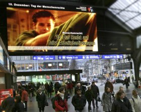 Los galardonados anuncios de servicio público “30 Derechos, 30 Anuncios”, disponibles en 17 idiomas, han sido transmitidos en más de 100 países en CNN International, Sky News y National Geographic Channel. Se muestran en autobuses, en centros comerciales, cines, estadios deportivos, estaciones de tren y aeropuertos, y se utilizan para presentar lecciones sobre los Derechos Humanos y dar conferencias en escuelas, centros comunitarios y otros entornos educativos.