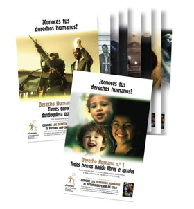 “30 Derechos, 30 Anuncios” Unidos por los Derechos Humanos ofrece anuncios de servicio público para el uso en el aula con las lecciones correspondientes, para la transmisión por televisión y para transmitir en los aeropuertos, estaciones de tren, eventos deportivos y otros lugares.